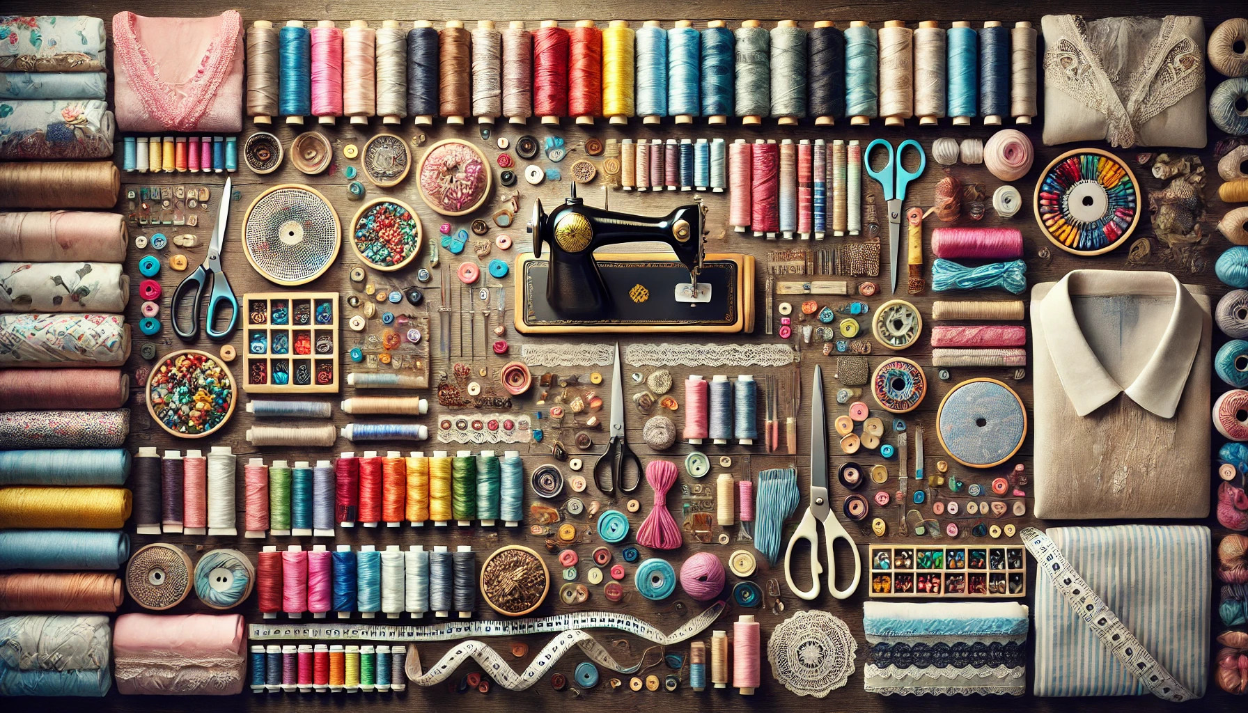 Najdete u nás širokou škálu pro vaše tvoření a opravy. V našich regálech na vás čeká pestrá nabídka nití, balvnek, vlny, látek, ale také knoflíků, záplat, originálních šitíček, krajek, provazů a provázků a mnoho dalšího.